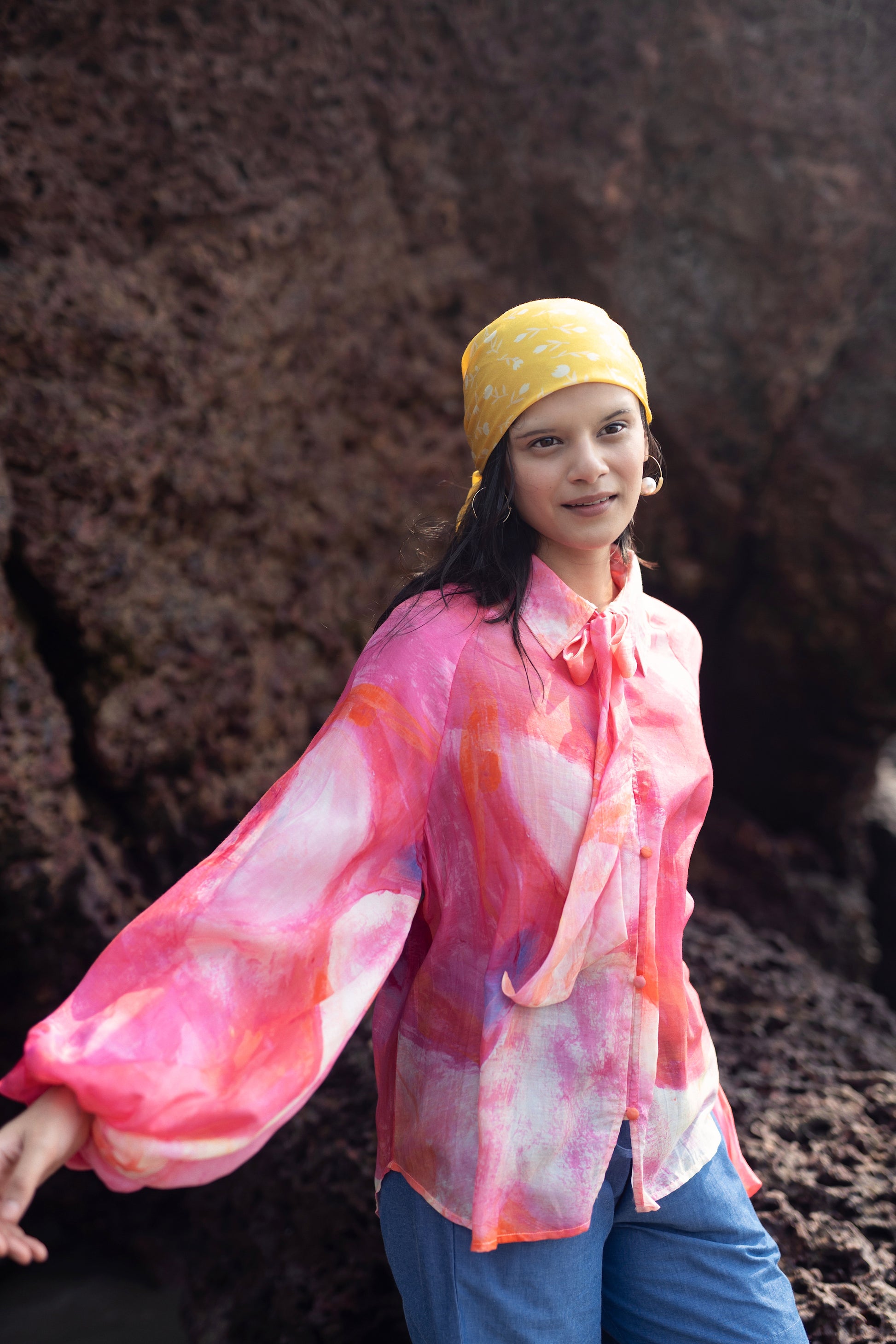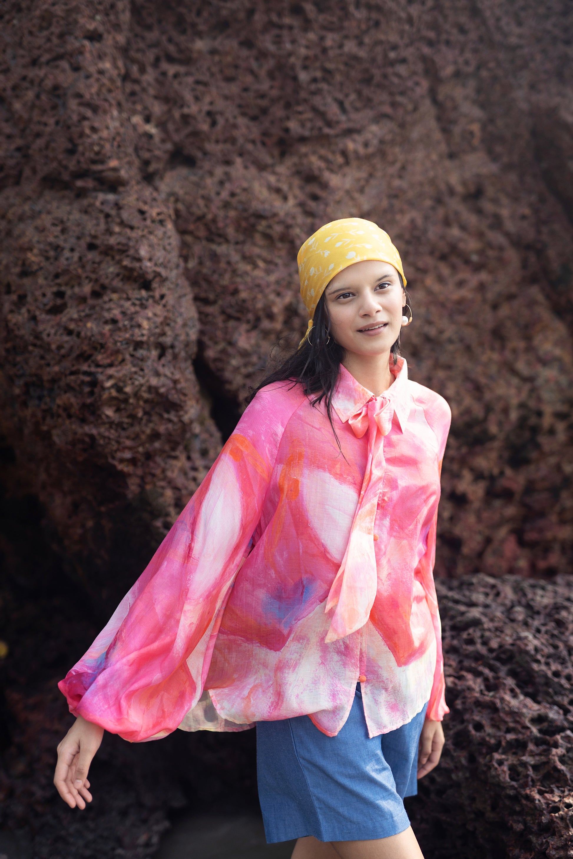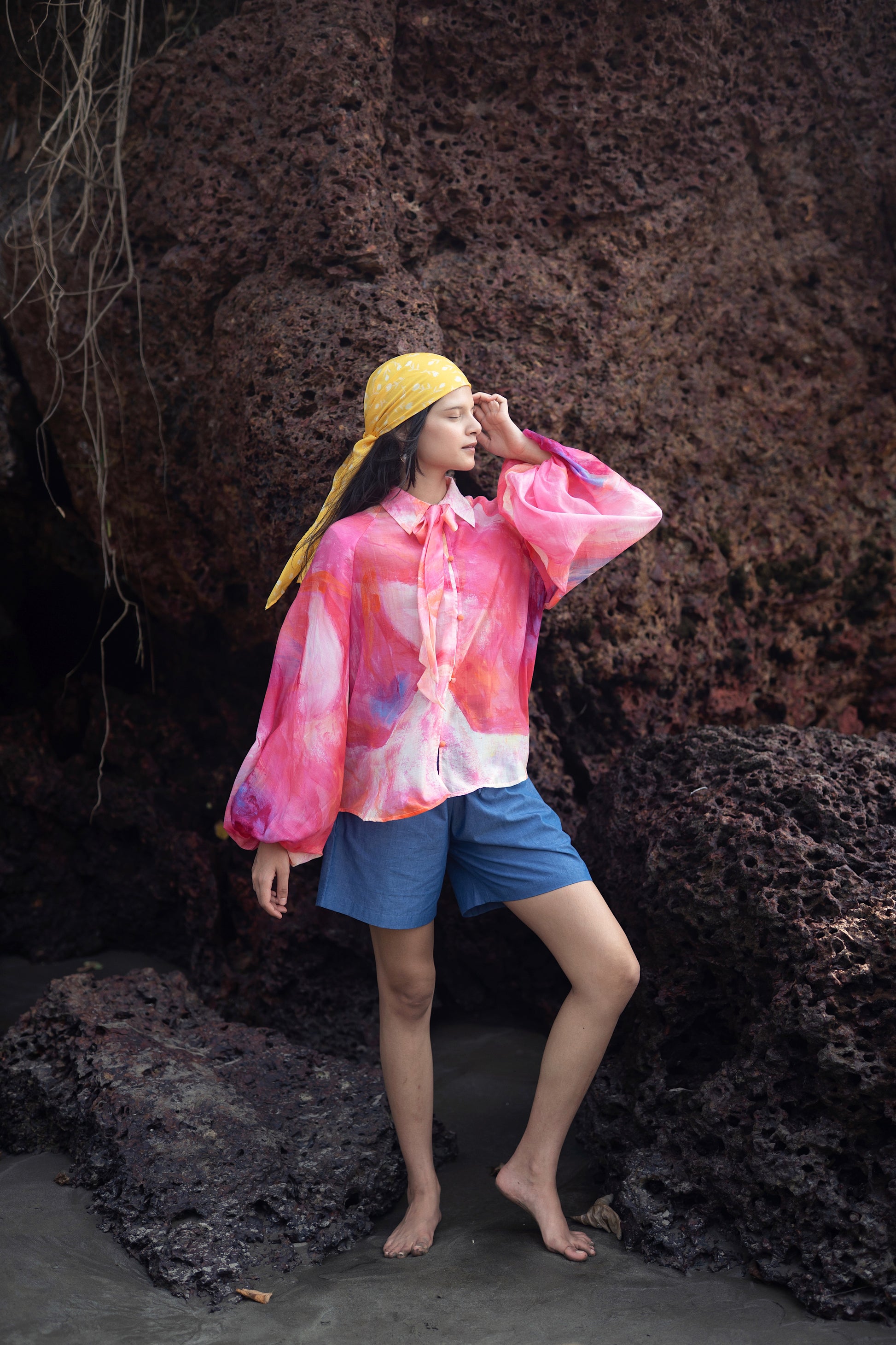 Naked Ninja is a relaxed fit shirt with raglan exaggerated sleeve. It is made from our cotton silk fabrication. This shirt is developed from an artwork of a very talent artist Kanika. She loves taking inspiration from women bodies and love painting them in multiple bomb of bright colours.