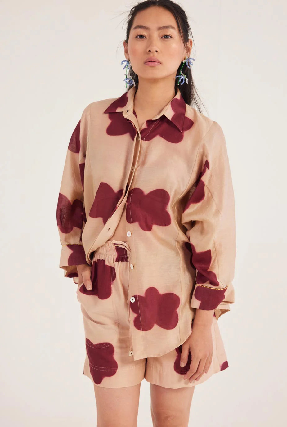 Crafted in soft, flowy fabric that feels like second skin, our Nama co-ord features an asymmetric hemline shirt with an interesting back detail. The shorts feature a cozy, elasticated waistline with ties.