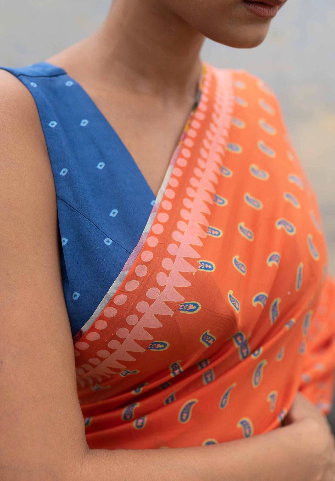 The sari comes without the blouse.
