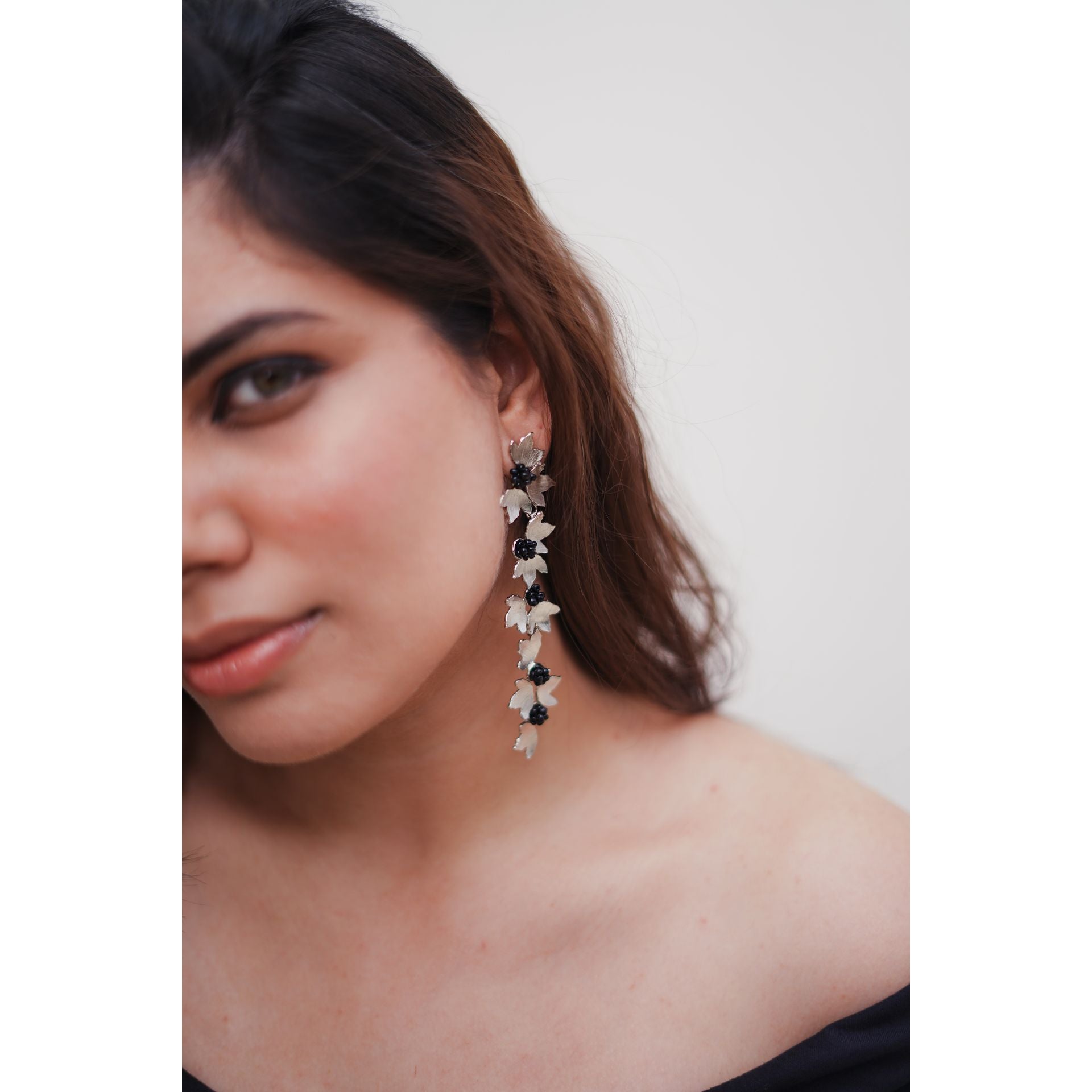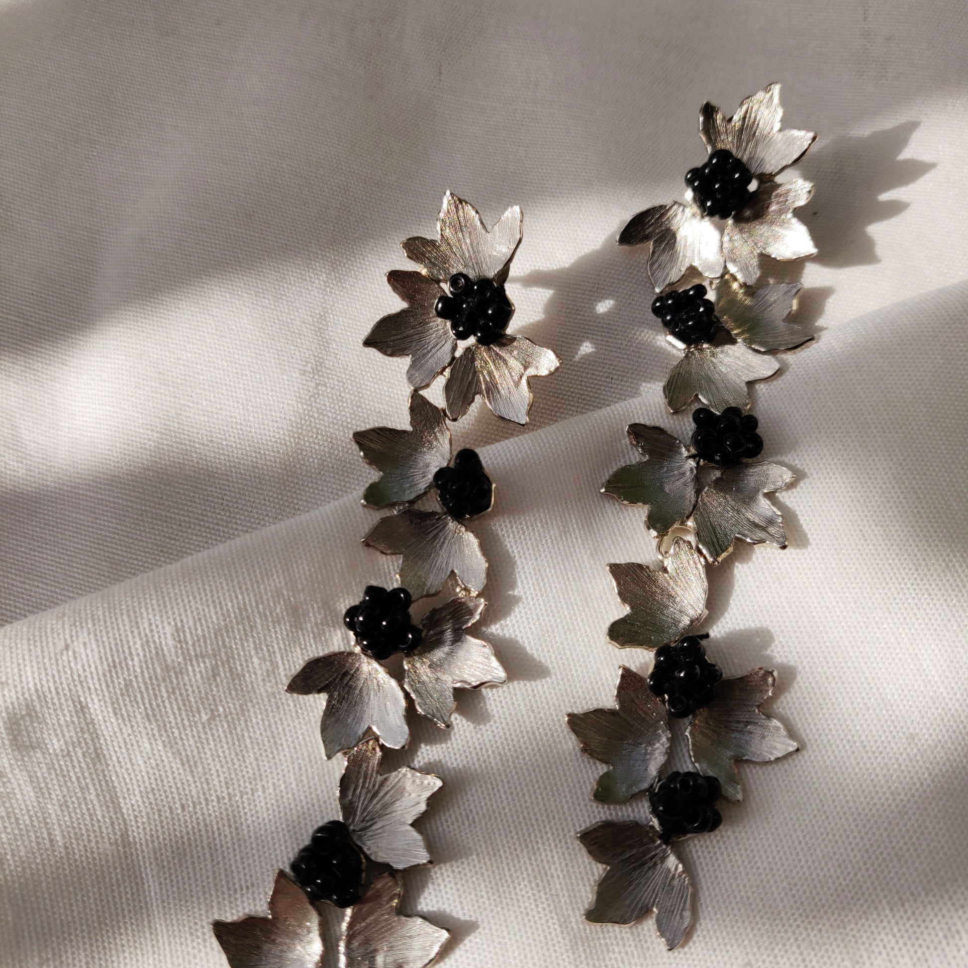 Petals, made in brass and carefully placed next to each other. Embellished with glass beads this piece is perfect to play dress up.
