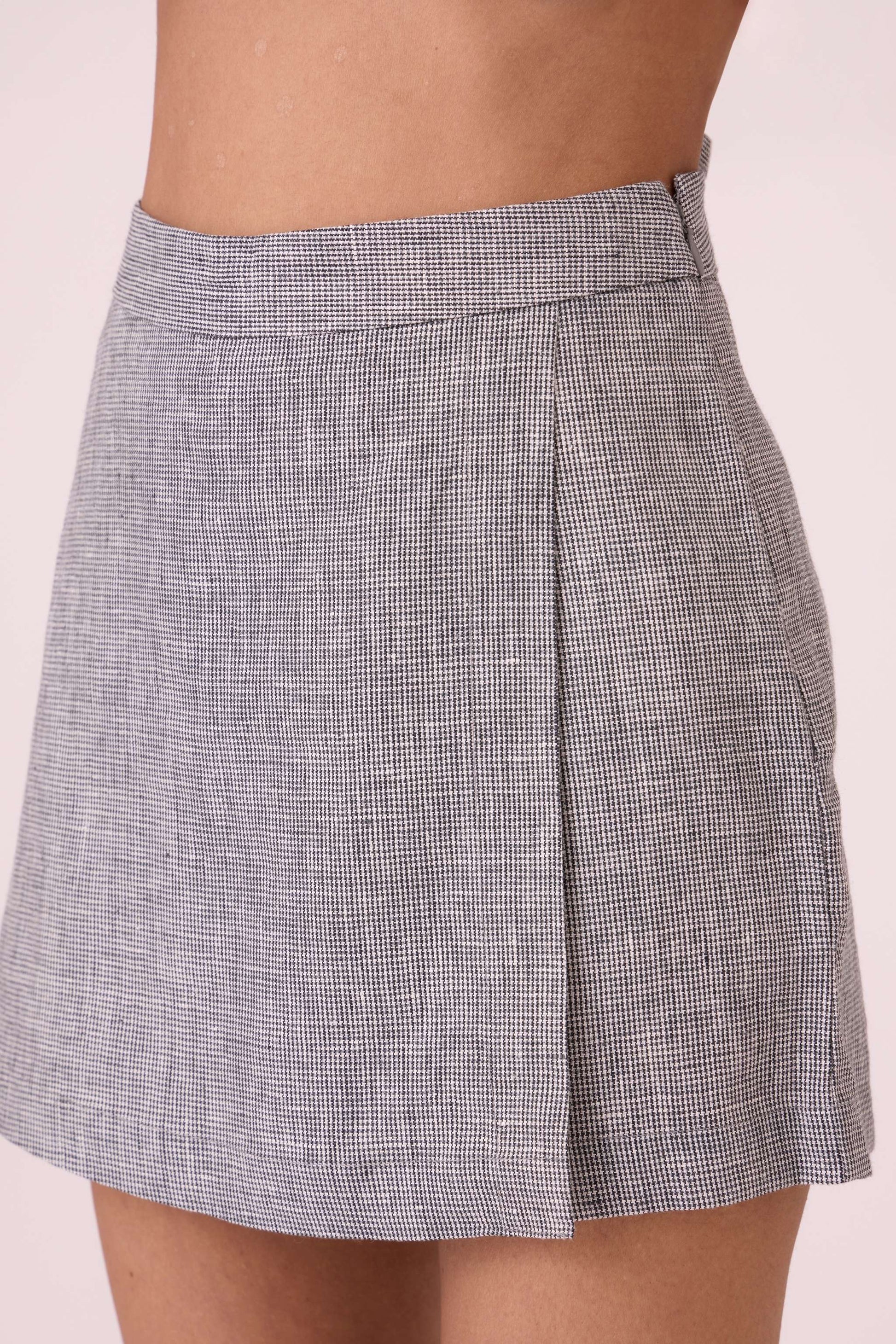 Polina Houndstooth Linen Skort