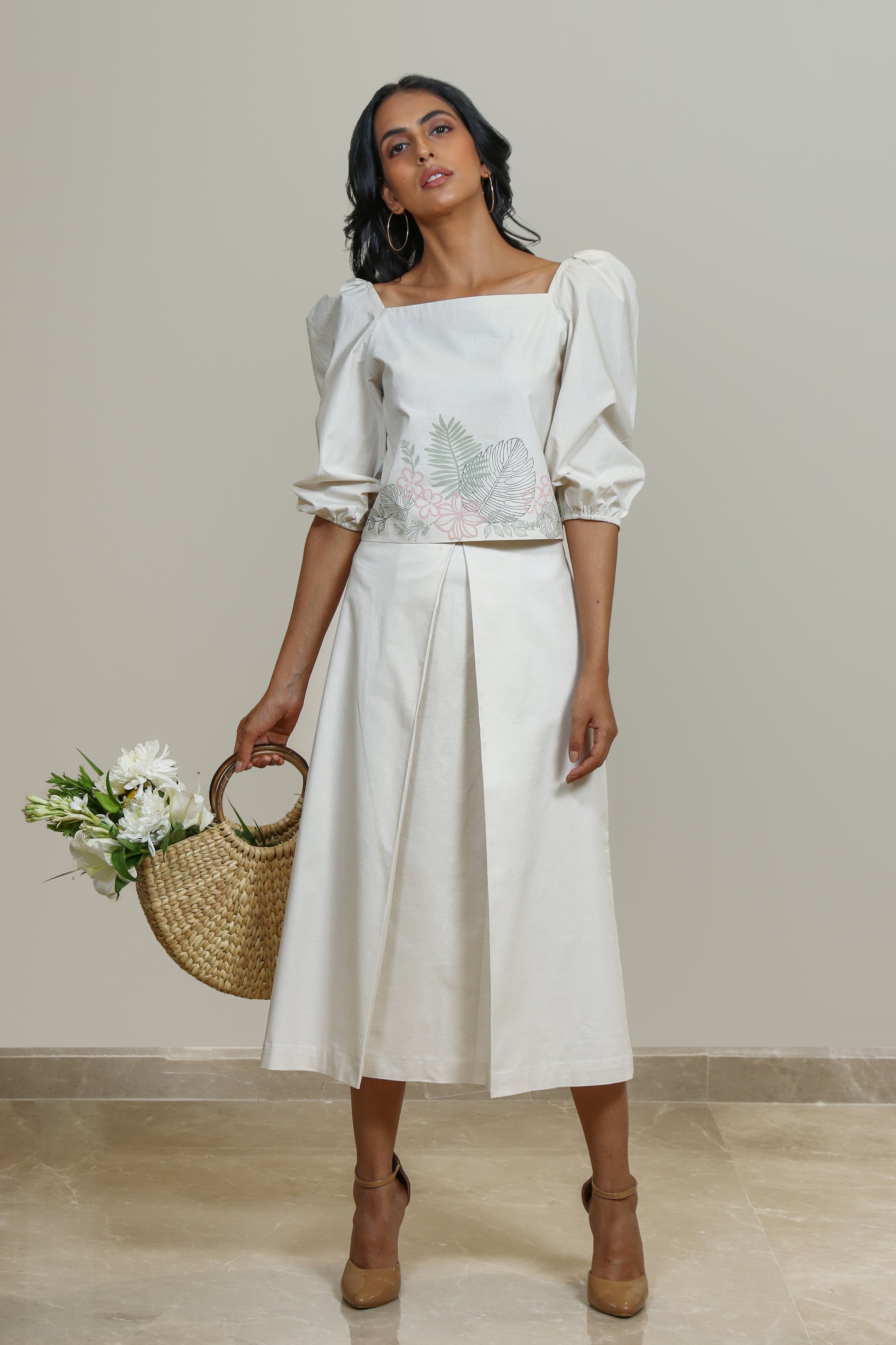Inverted box-pleated crisp skirt.