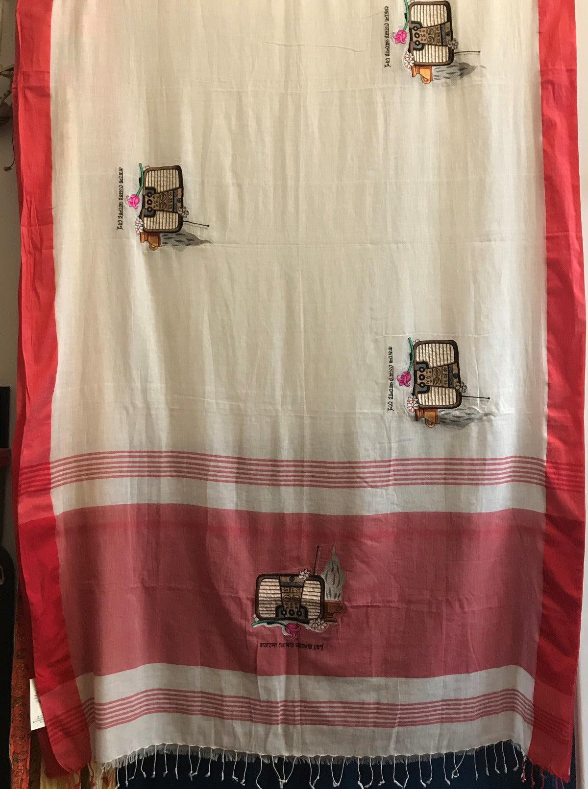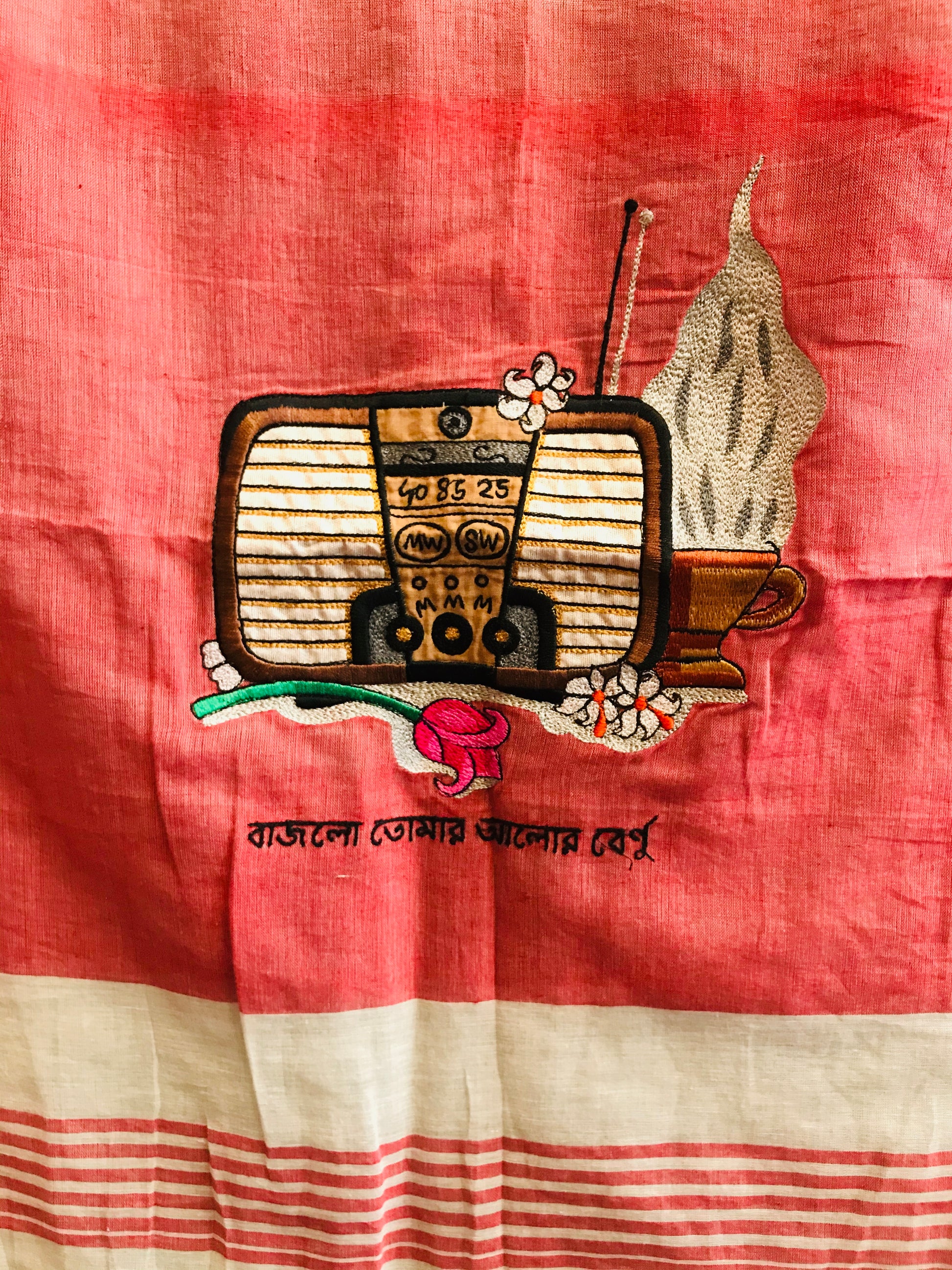 Handwoven cotton from West Bengal with embroidered Radios.