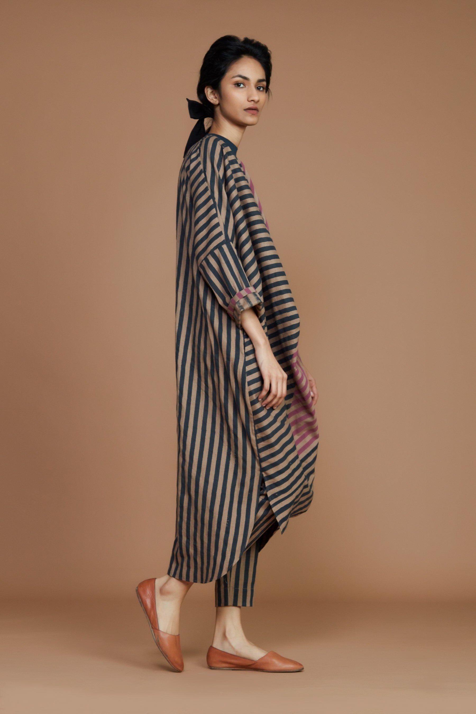 Subtle yet chic, this rib cowl tunic is perfect pick for a day out. This versatile style can be worn as a sporty-laid back look or you can team it up with delicate earrings & flats to rock the day! Complete the look with the matching striped pants