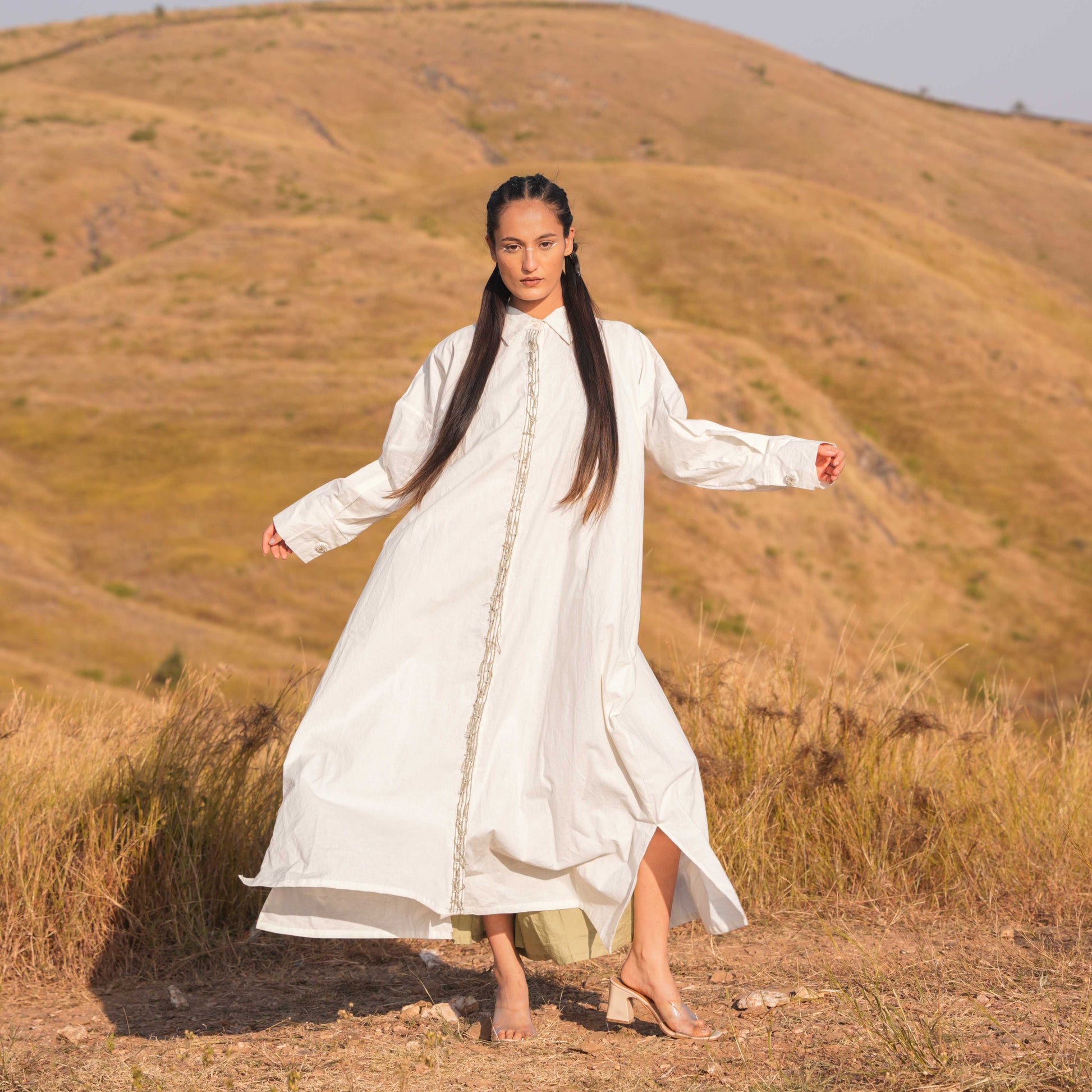introducing our Chanderi Printed Tier Dress, a fusion of elegance and whimsy that exudes effortless charm. This dress features delicate tie straps that add a hint of playfulness and adjustability. Detailed with intricate highlight and sequence detailing, the dress sparkles subtly, enhancing its allure. Perfect for sunny days or special occasions, this dress promises comfort and style with every wear, making it a versatile addition to your wardrobe.