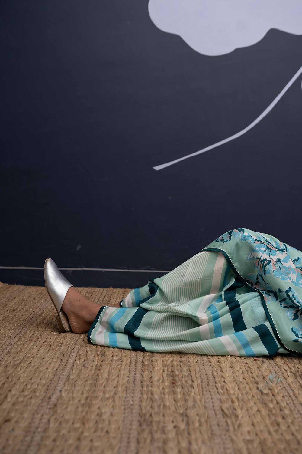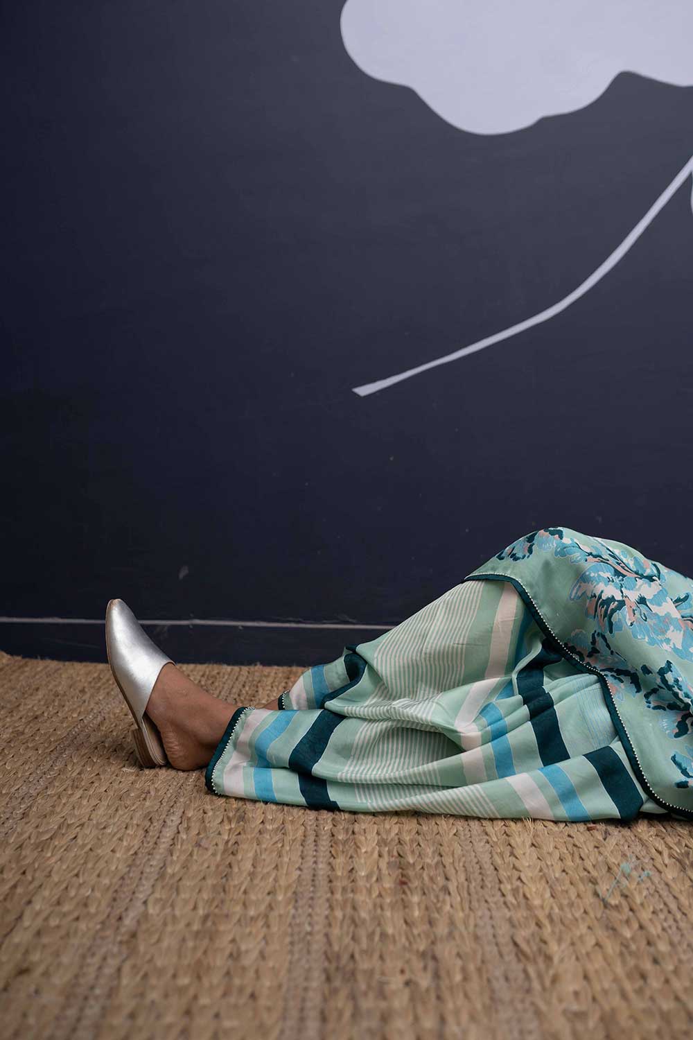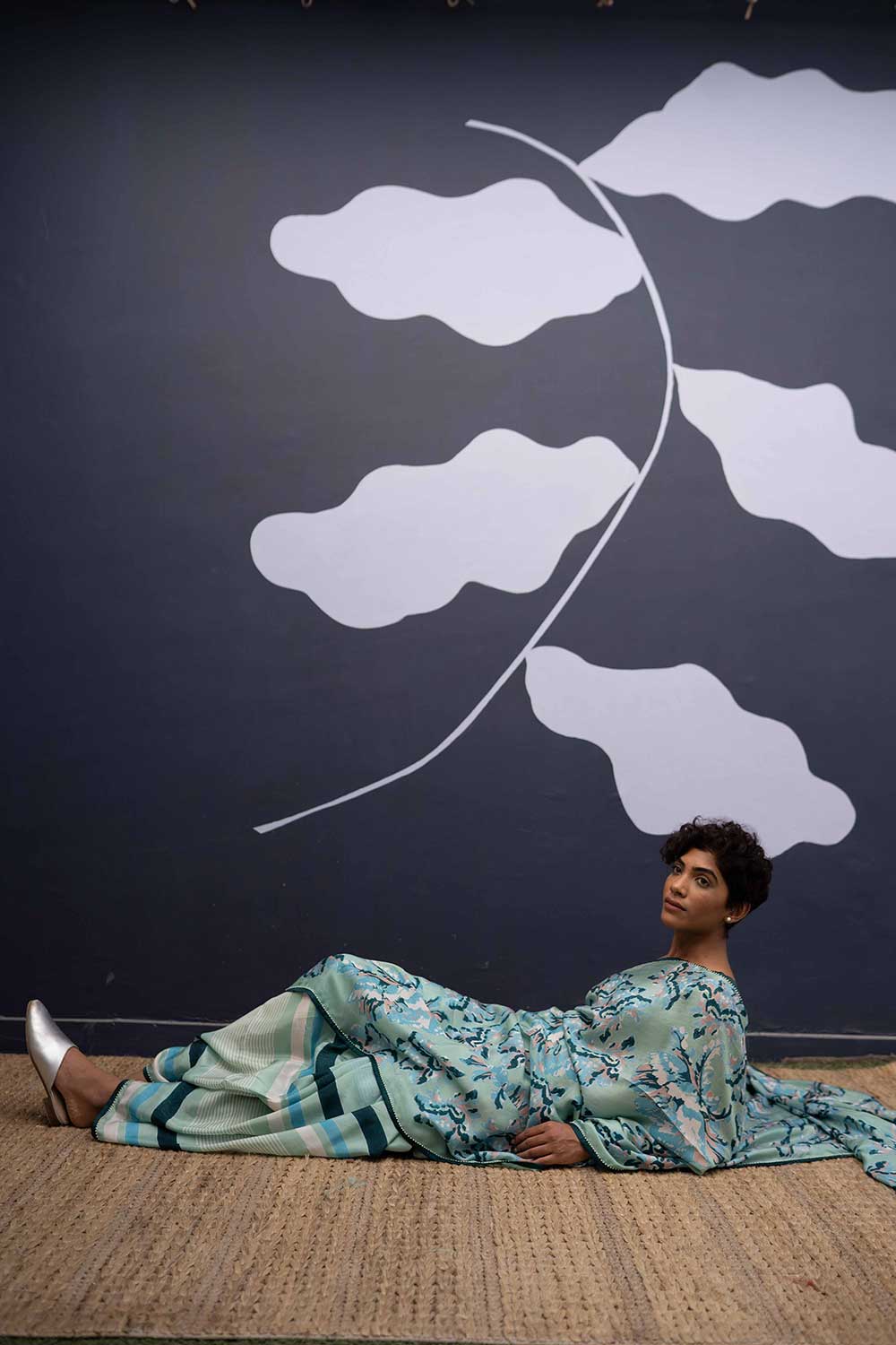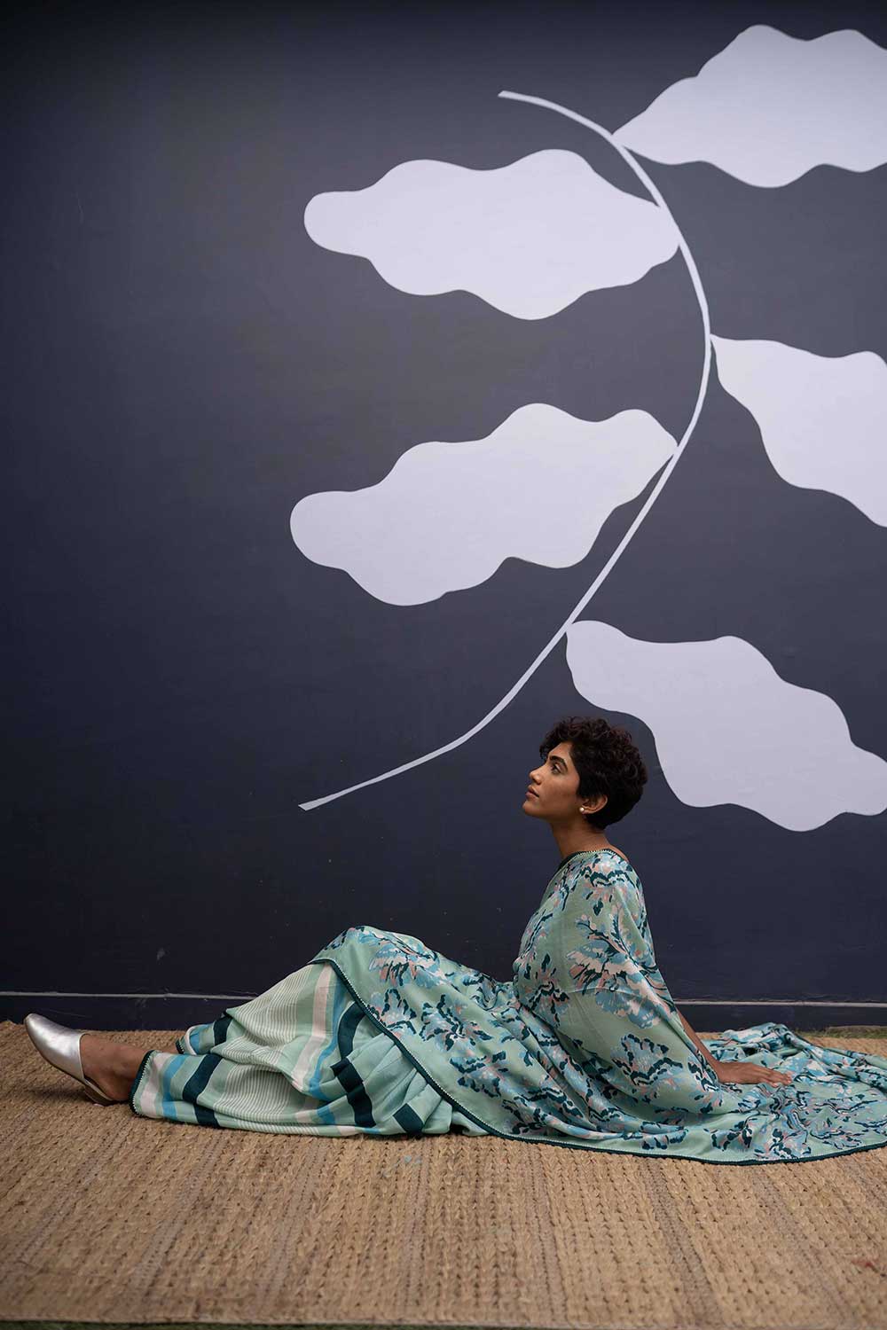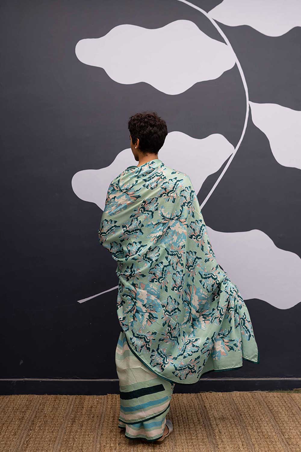 The rose island print is a amalgamation of block printed flowers in cotton in shades of mint and green and blue