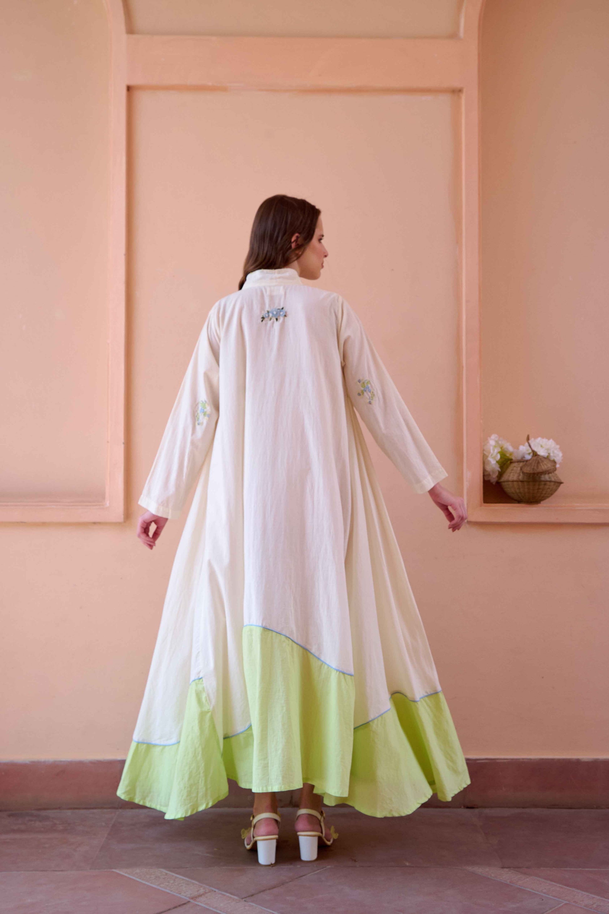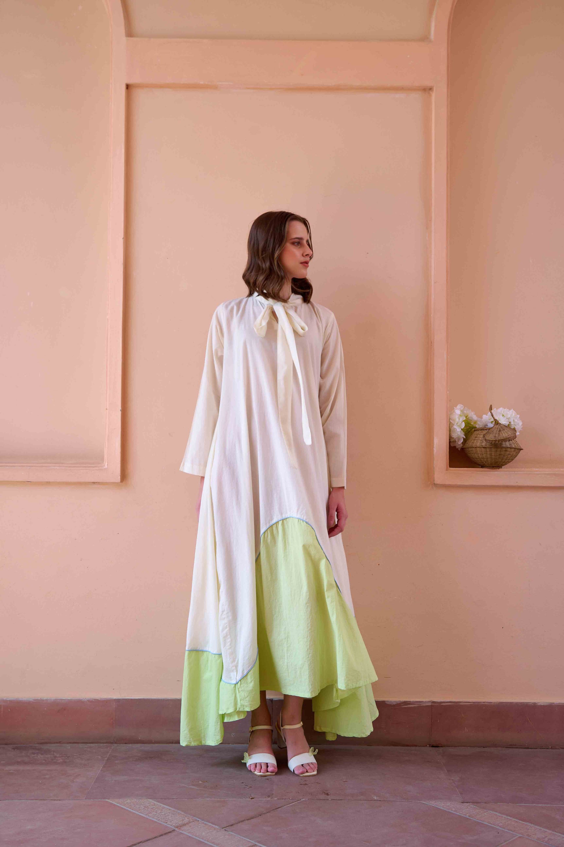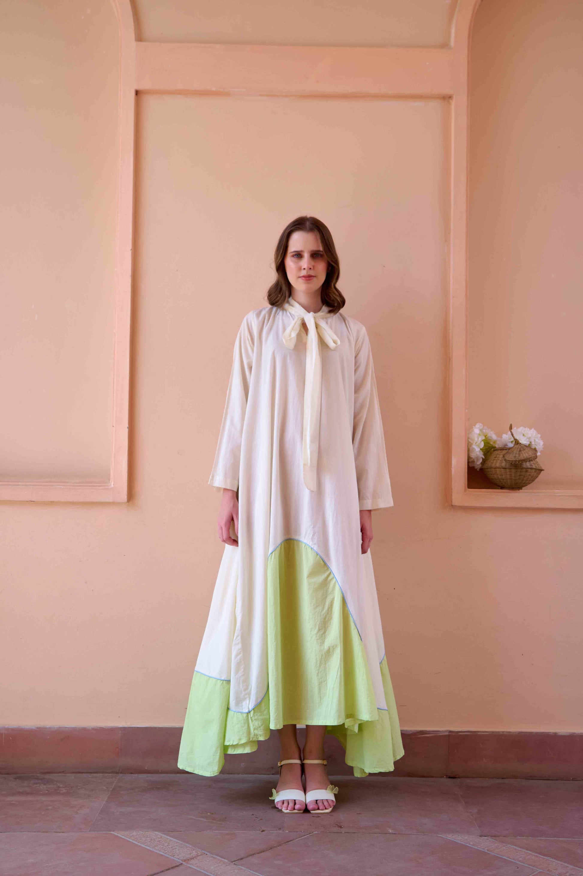 Step into sophistication with our A-line Dress, designed to enchant with its symmetrical silhouette and timeless charm. The dress features a bow collar adorned with intricate knots detail, adding a touch of elegance and refinement. An eye-catching patch on the sleeve combines applique and embroidery, creating a captivating focal point that enhances its feminine allure. Perfect for special occasions or evening outings, this dress exudes modern sophistication with a hint of vintage flair, ensuring you stand out with grace and confidence.