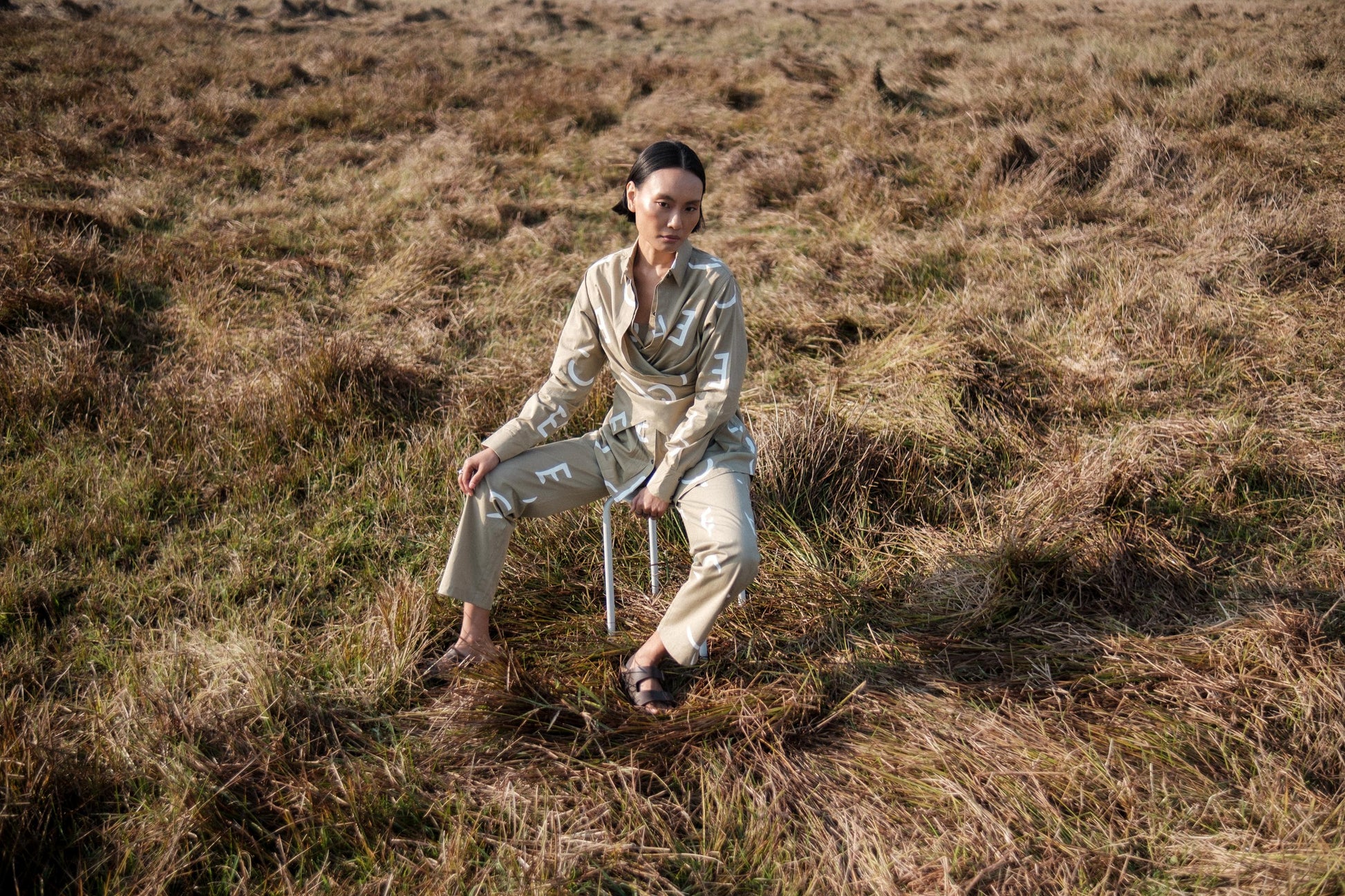 Seattle Wrap Shirt Khaki Line Printed