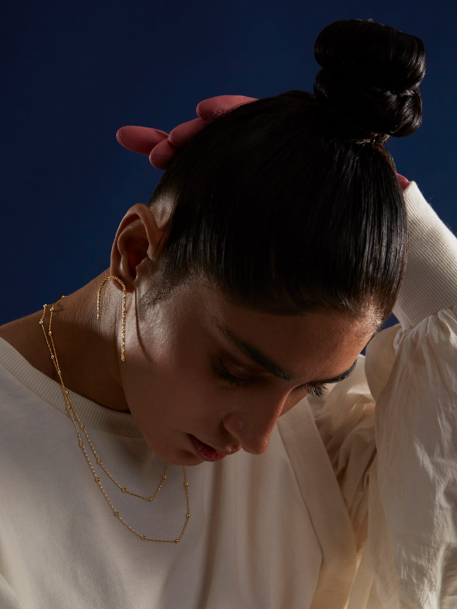 Light as air, the 'Shimmy' is a delicate, classic bubble chain that belongs in every jewellery box. A lovely length that allows it to be worn down long or wrapped in a double layer closer to the neck, this is a perfect gift for every jewellery-lover.