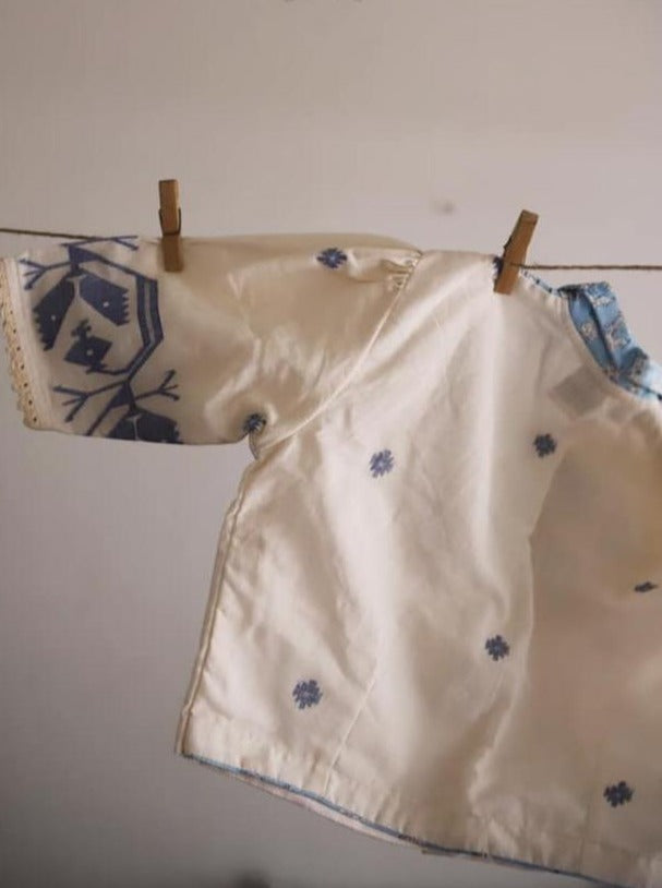 If Sky had flowers it’ll probably look like this. Sanganeri block print in powder blue collar gets us thinking of a dreamy sky with floral clouds.