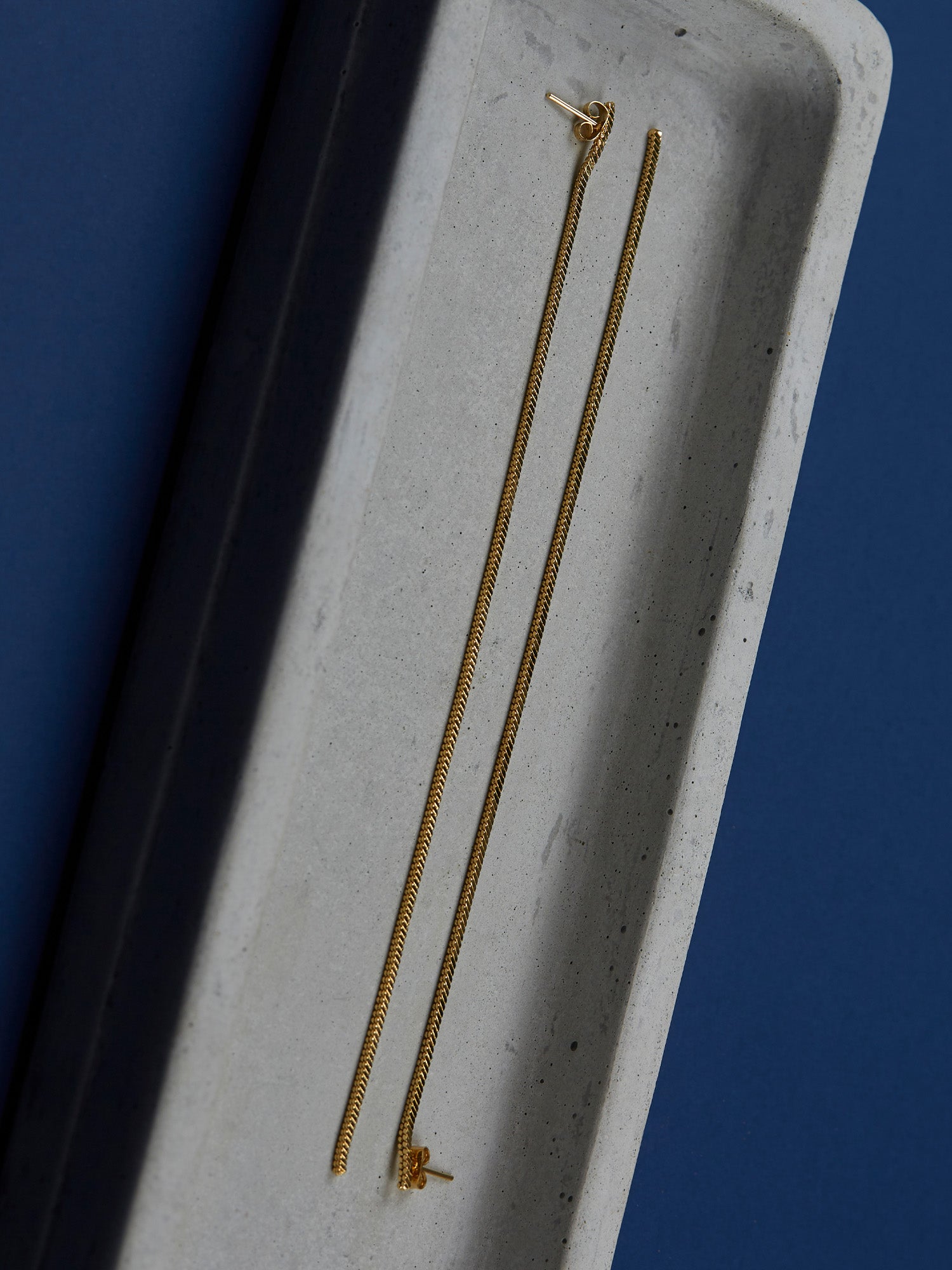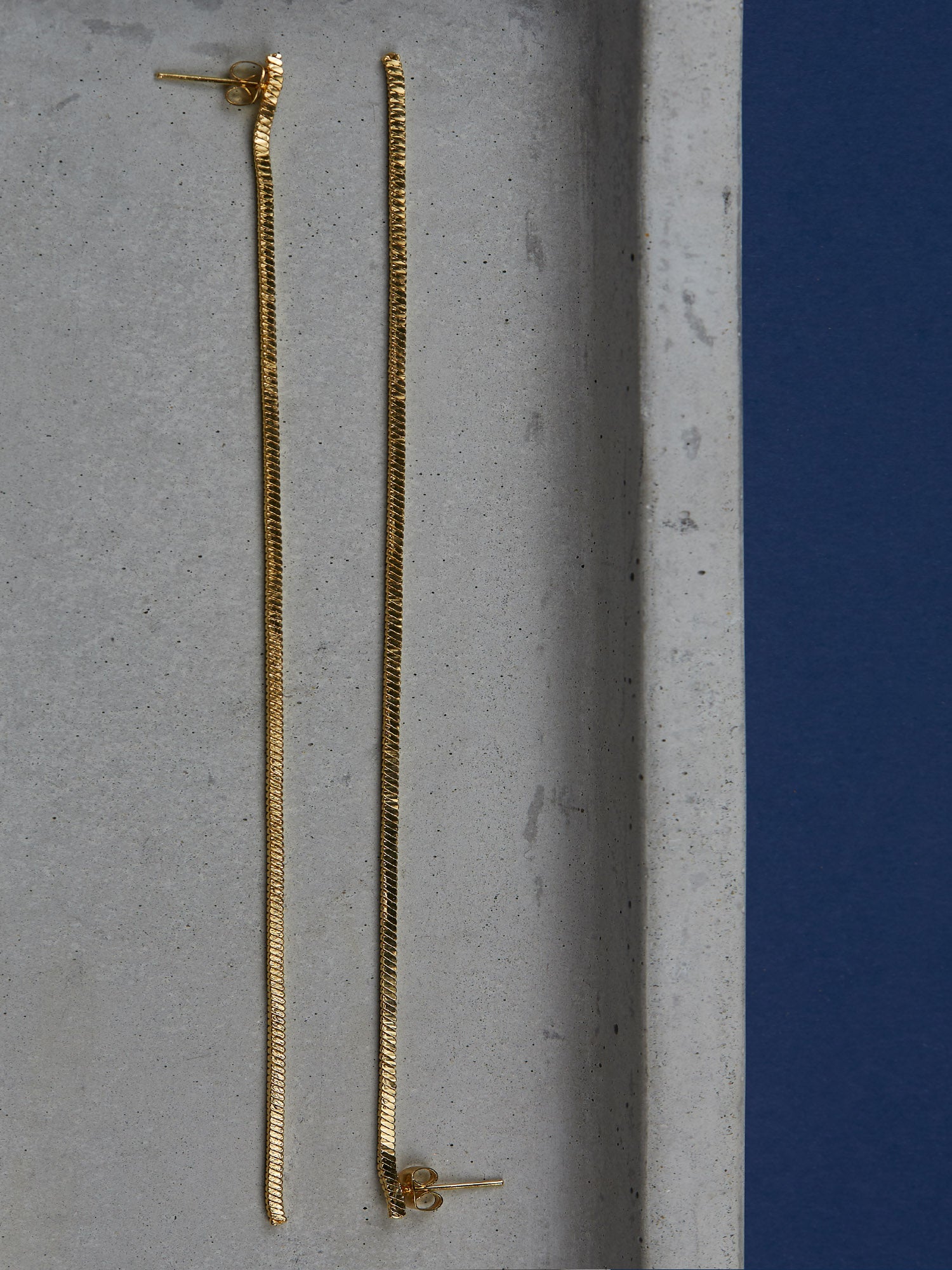 A perfect accomplice to channel your main character energy - Say hello to these showstoppers. Fluid and linear at the same time, these earrings are the definition of 'Bold-minimals'.