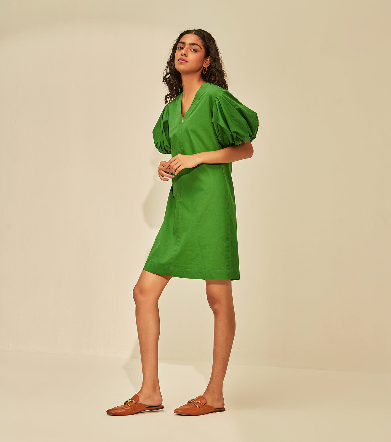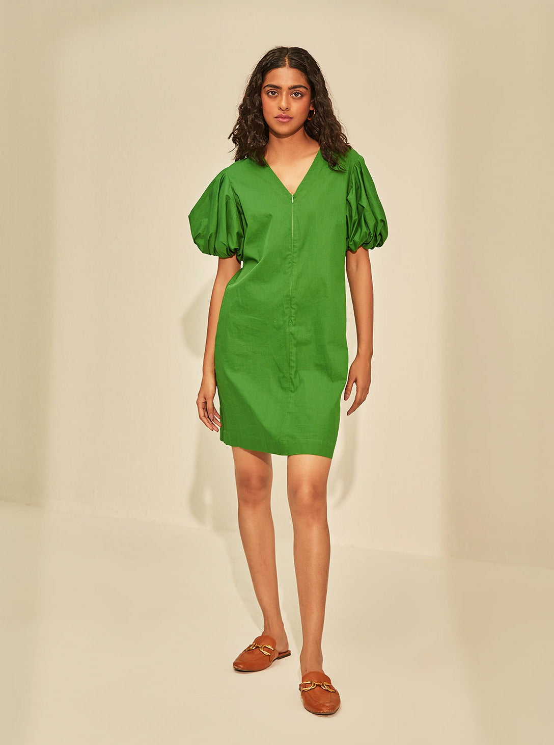 Sugarcane is cumlination of summer vibrance, translated in a silhouette that can find itself fitting for AM to PM. it features a front zipper opening, crafted in poplin.Handcrafted in India. Side seam pockets.
