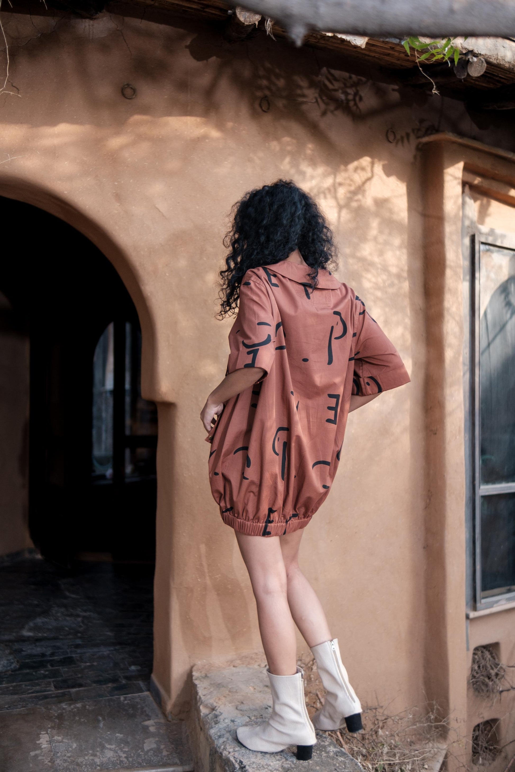 An oversized shift dress with elasticated hem detail , pockets and asymmetrical collar is the perfect defination of casual chic.