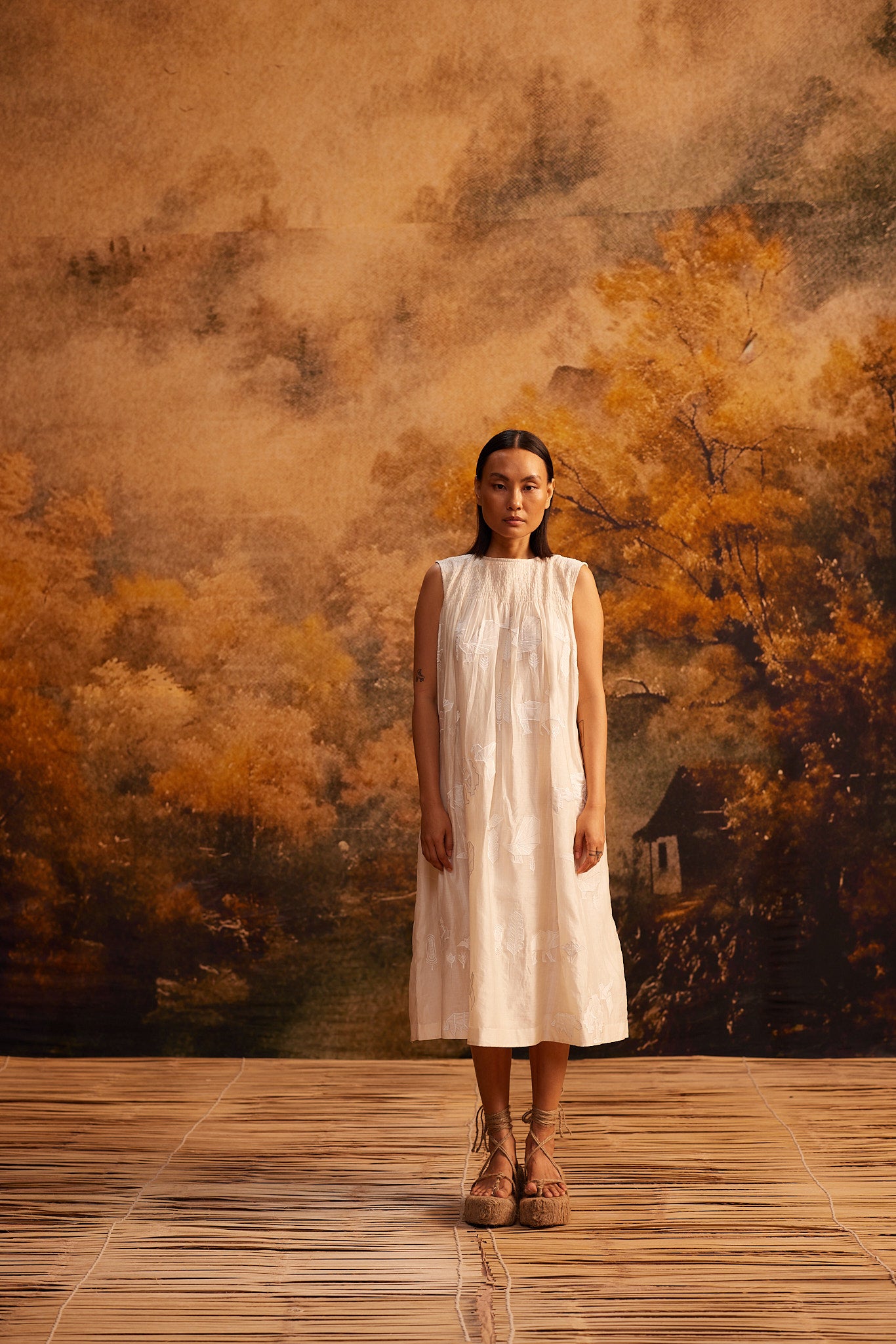 Artfully inspired by the delicate precision of valley folds, the Tani-Ori Appliqué Ruching Dress features soft ruching that creates subtle texture and movement, while detailed appliqué panels add depth and visual interest. The contemporary silhouette strikes a