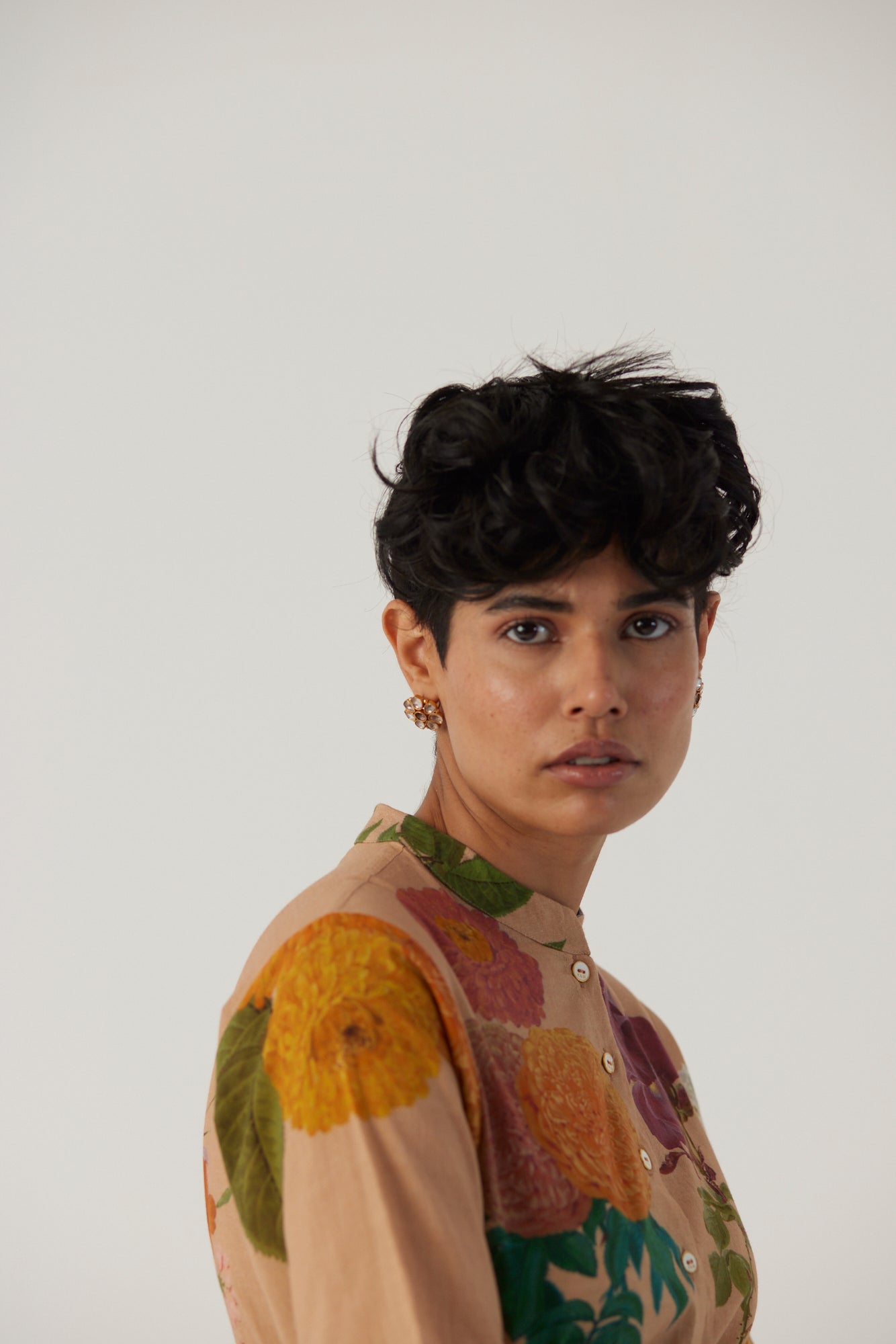 The dress is made from the prints inspired from the botanicals of timeless classics adding a sense of warmth. This dress crafted in vintage garden print carefully printed on cotton with box-pleat gathers on the waist with a tie up string that can be adjusted.