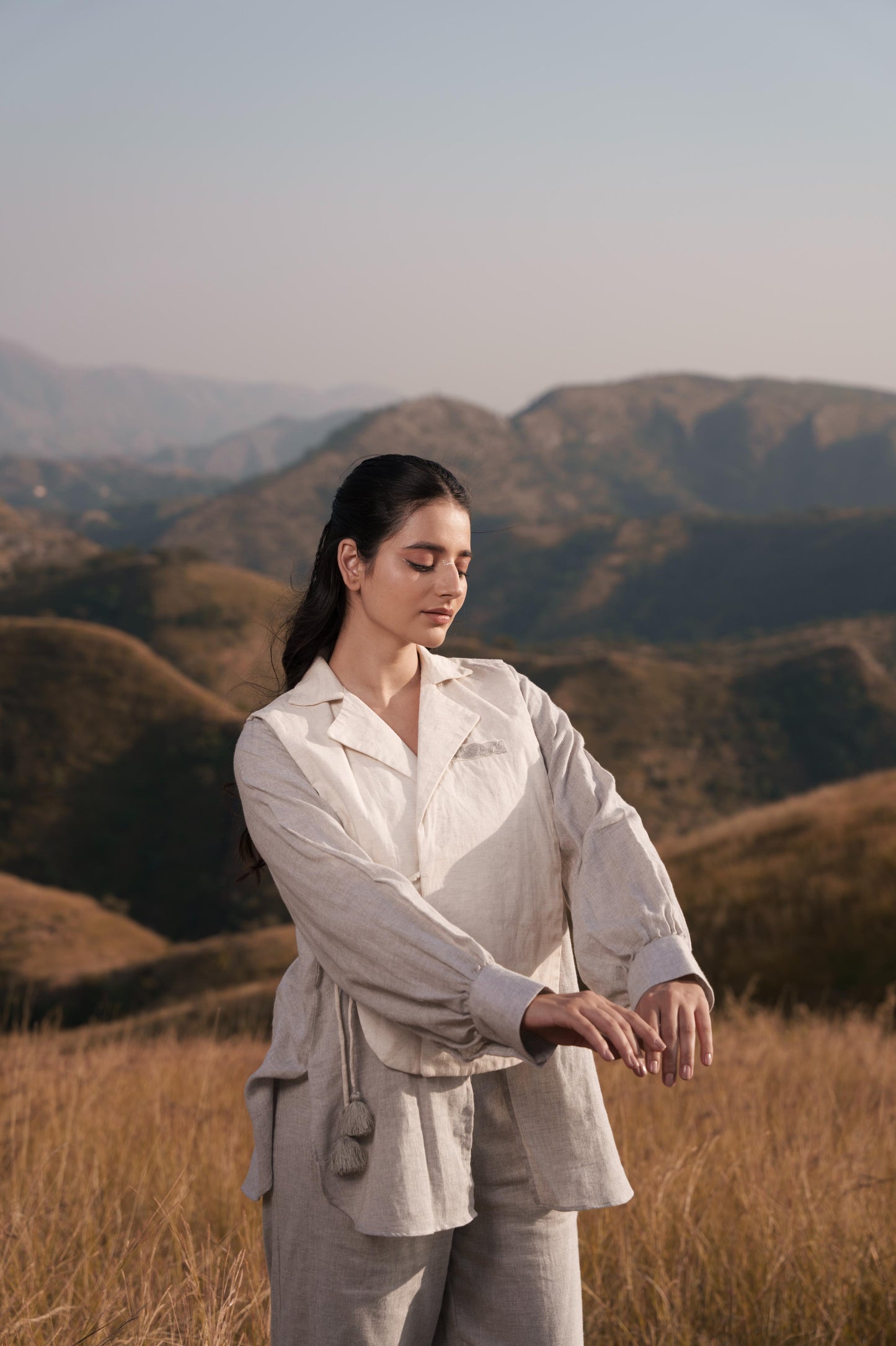 Scallop lace adorns the hem and sleeves, adding a touch of femininity and grace. Knots on the neckline provide a charming accent, enhancing its delicate allure. For adjustable waist definition, heart-shaped tassels are attached to a string, allowing for a personalized fit and adding whimsical charm.
