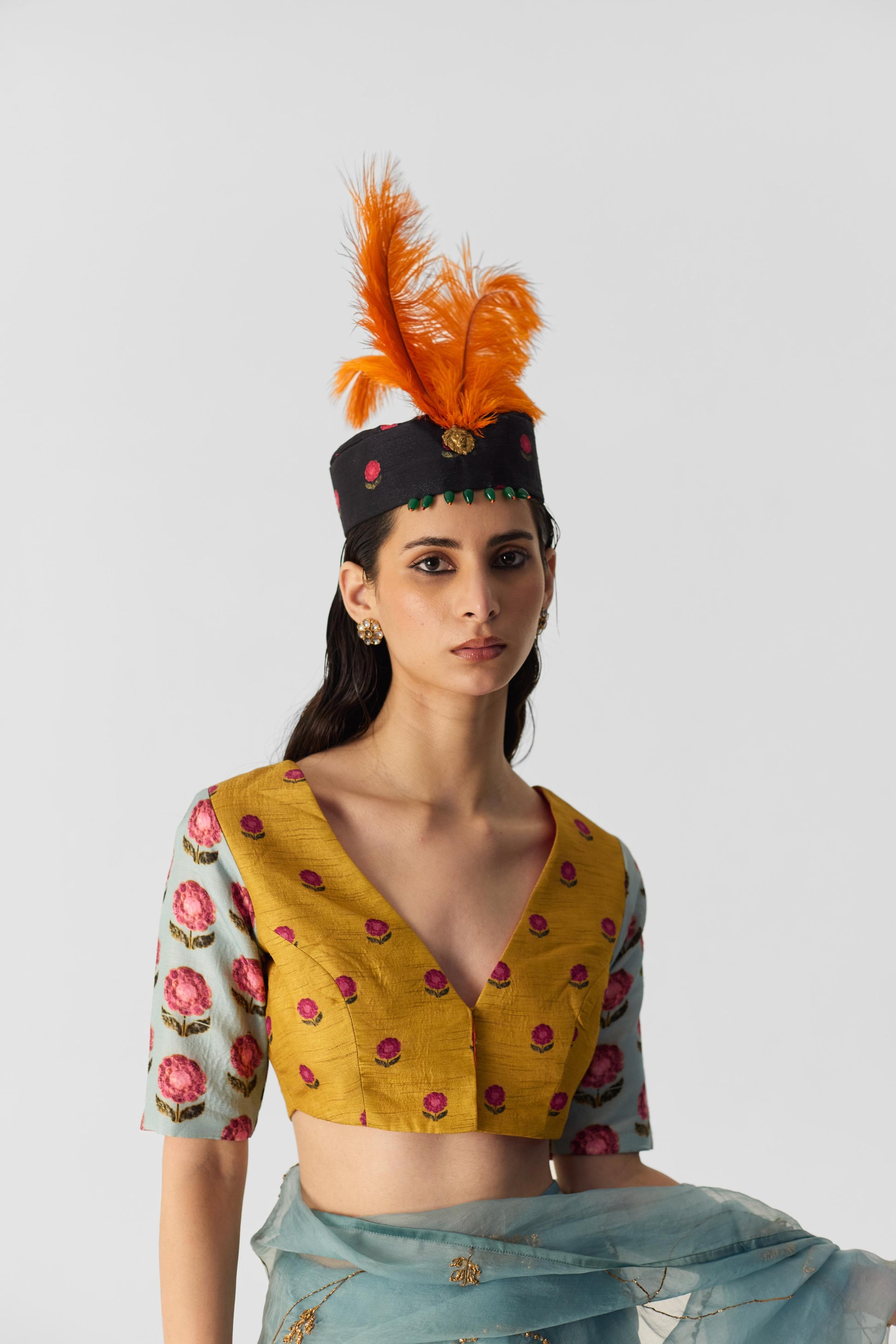 Yellow Blue Booti Blouse